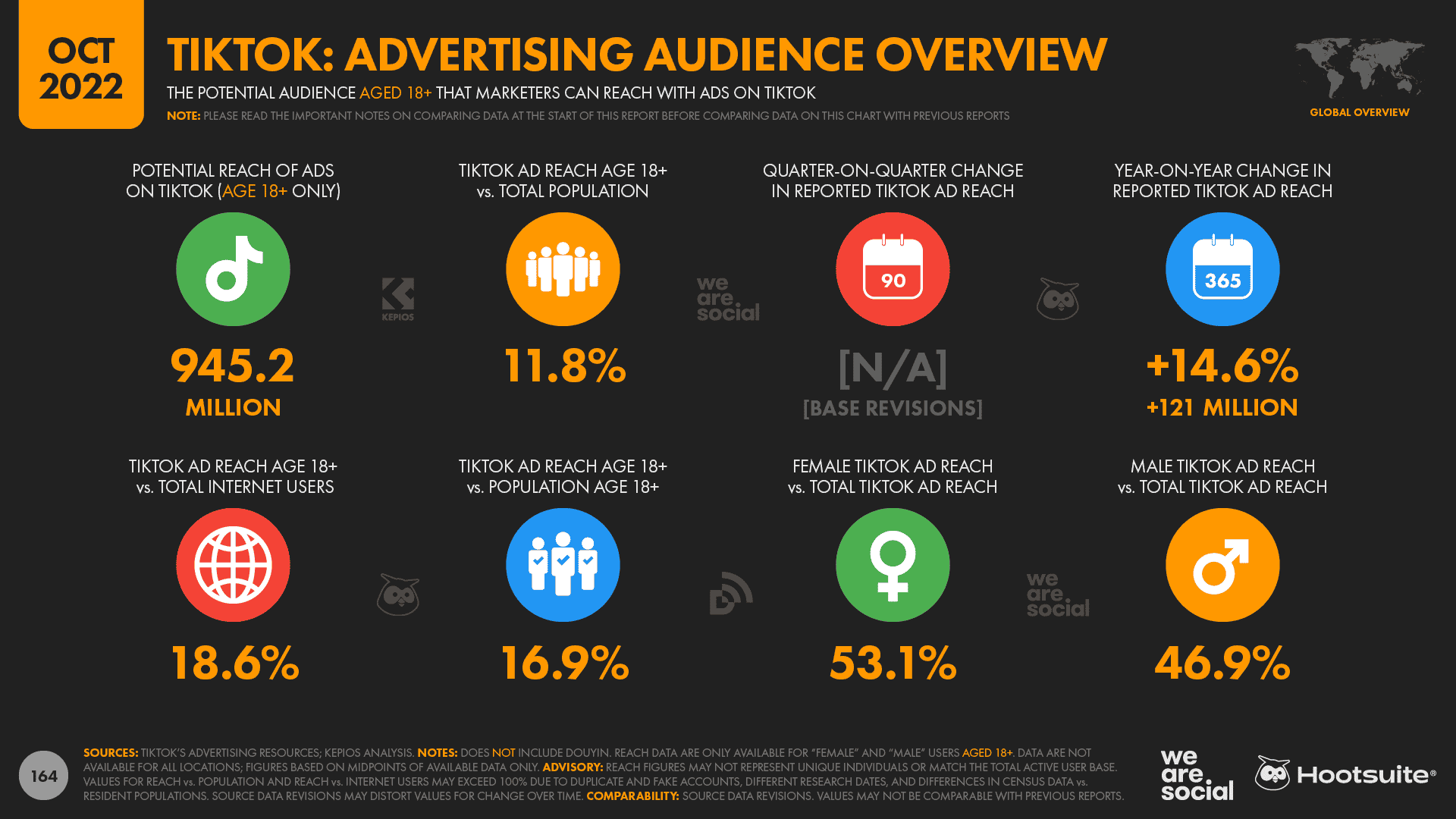 Due to quirks in the way that Bytedance’s tools report potential advertising reach for its various services, we’ve revised our ad reach numbers for TikTok in our October 2022 report.
