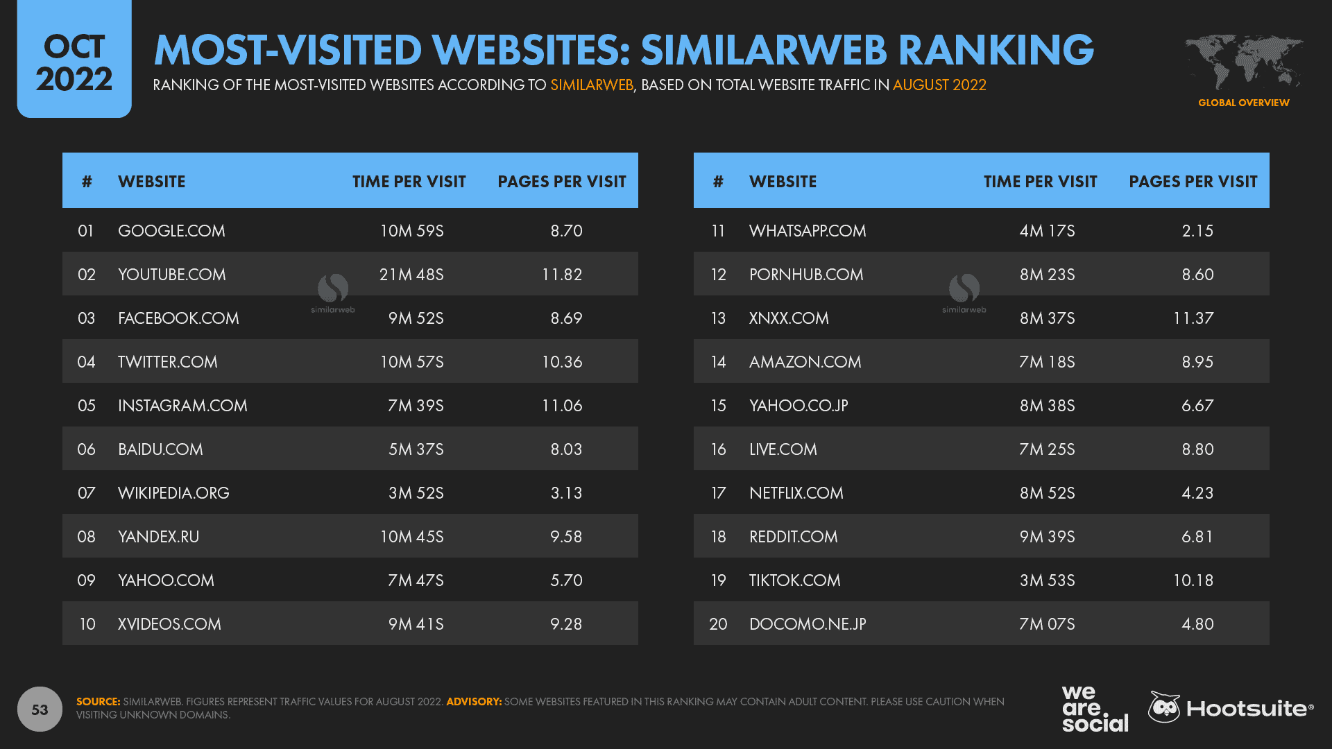 And while it sits just outside of Semrush’s current top 20, Similarweb reports that WhatsApp.com is also a favorite on the web, attracting more unique visitors than many of the world’s top adult sites.