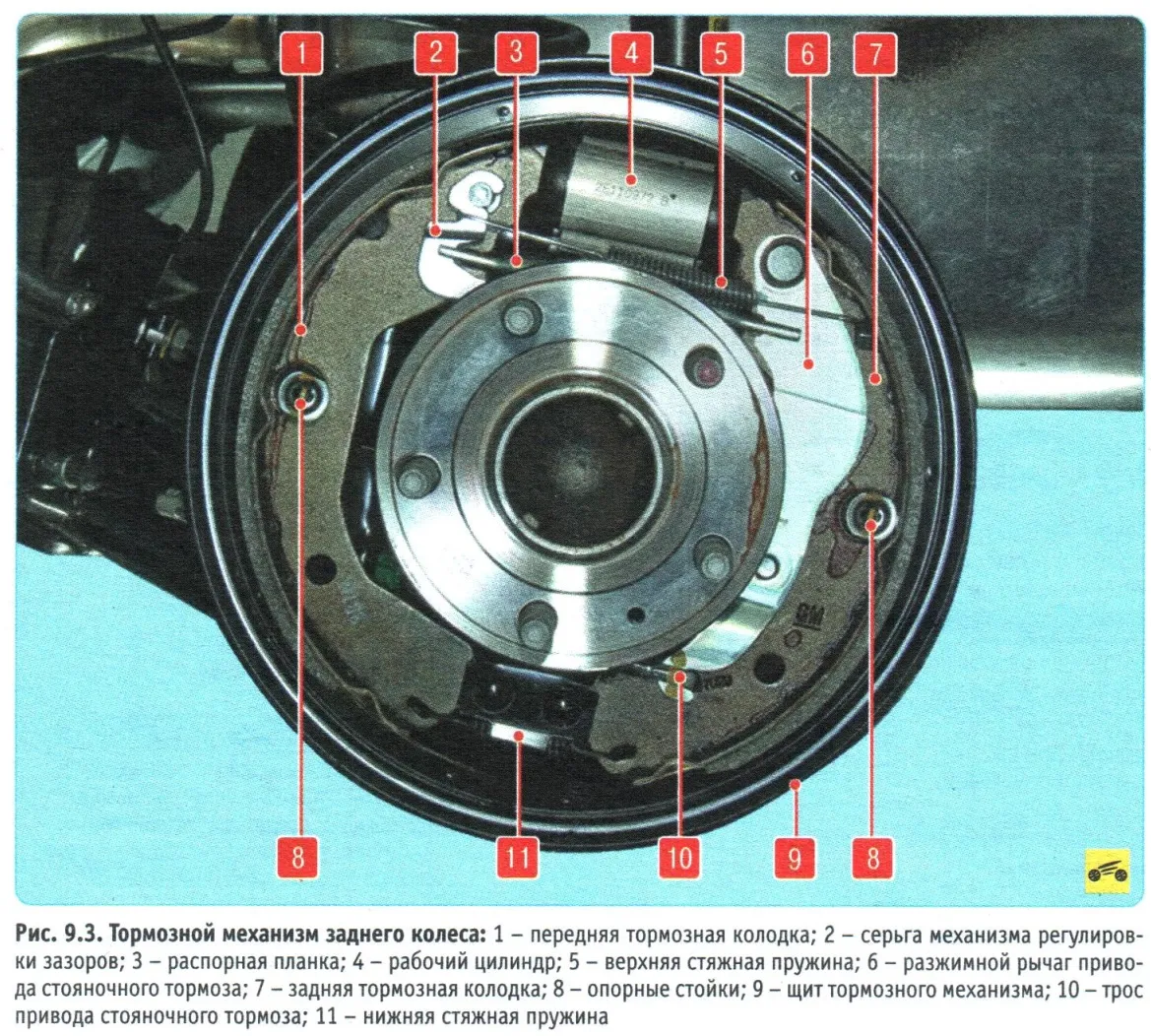 Если же сзади стоят барабанные тормоза, например на автомобилях с двигателем 1.4 и 1.6 л., тогда процесс замены будет следующим: