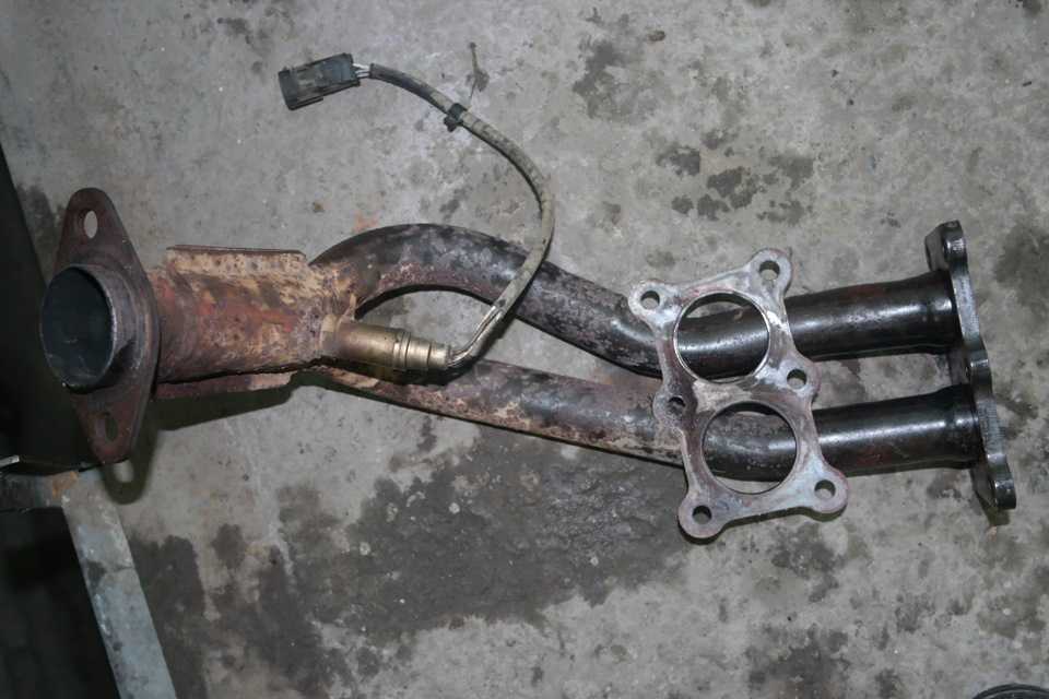 Первым делом нужно снять катализатор, или как в моем случае, переходную трубу.