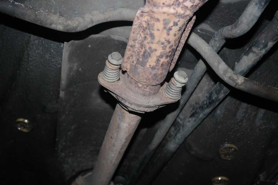 - Снимите глушитель и, при необходимости, резонатор с резиновых подвесок.