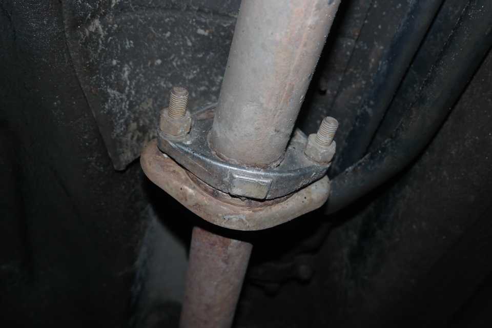 - Если нужно поменять резонатор, открутите болты крепления трубы резонатора и выньте армированную проставку.