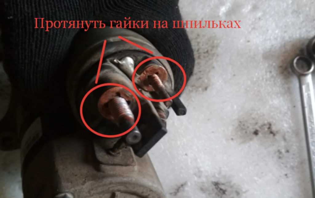 3 — гайка крепления провода электромагнитного реле стартера;