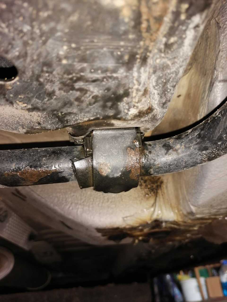 - Большинство крепежных элементов под днищем изрядно закисли, поэтому для ускорения процесса замены втулок стабилизатора их необходимо хорошенько обработать раствором WD 40, который снимает коррозию.