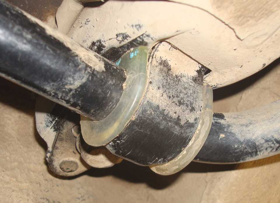 Проводя время от времени визуальный осмотр втулок стабилизатора, можно выявить их износ. Если на втулке есть трещины, форма изменилась (есть большие потертости), то необходимо заменить стабилизаторные втулки.