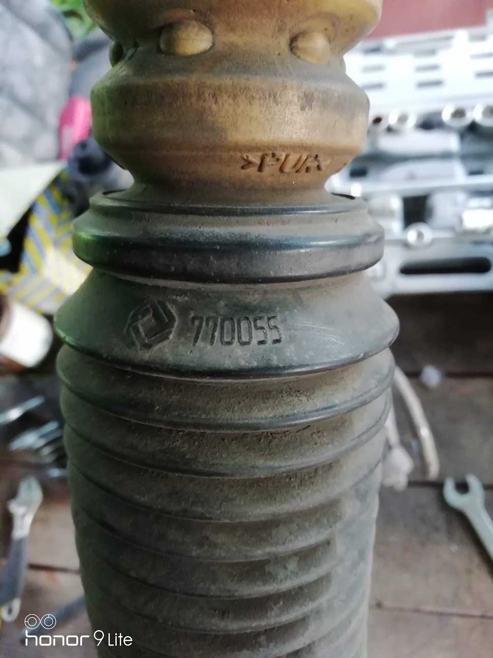 Когда снял, то обратил внимание, что старая подушка (а она кстати оригинальная) конструктивно немного отличается от новой, а именно частью которая упирается в тарелочку для отбойника. Отличается