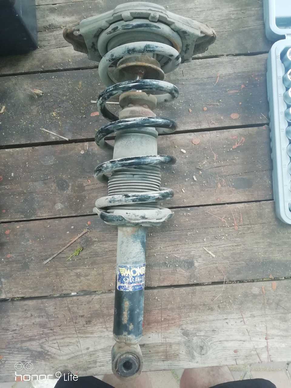 Вот такой б/ушный вариант мне достался. Самое ценное тут это амортизатор и пружина. Пружина тоже Монро и при чём новенькая практически )).